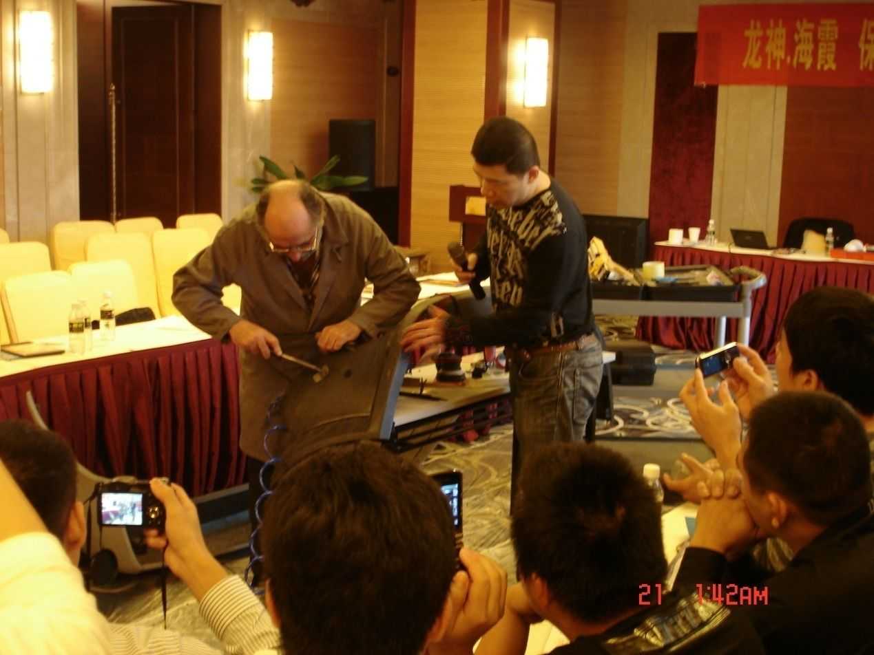為了提高汽車保險杠修復(fù)效率和質(zhì)量、減少維修成本,珠海市龍神有限公司邀請歐洲頂級汽車鈑噴維修專家Mr.Jean-Luc Dourté、于2011年11月在北京、廣西、四川、海南、廣東五地舉行巡回保險杠新型快速修復(fù)技術(shù)交流會,現(xiàn)場實操、講解國際最新的鈑噴修復(fù)技術(shù)。