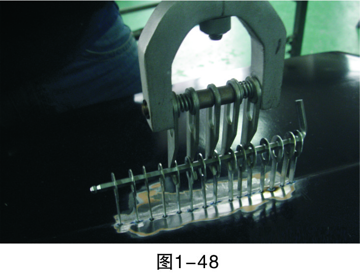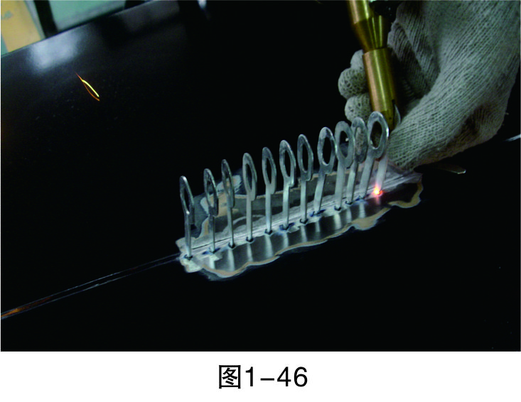 步驟5(直線焊接):把介子焊接成一條直線,為之后使用整形架做好準(zhǔn)備,如圖1-46所示。