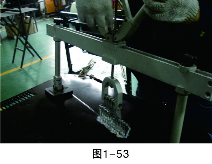步驟12(松開(kāi)螺母):兩手輕輕拉伸手柄,使螺母與連桿之間產(chǎn)生一定空位,慢慢松開(kāi)上面的螺母,如圖1-53所示。