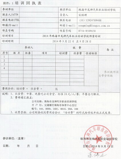 2、報名回執(zhí)表需在培訓開始前3日,回傳至我校。