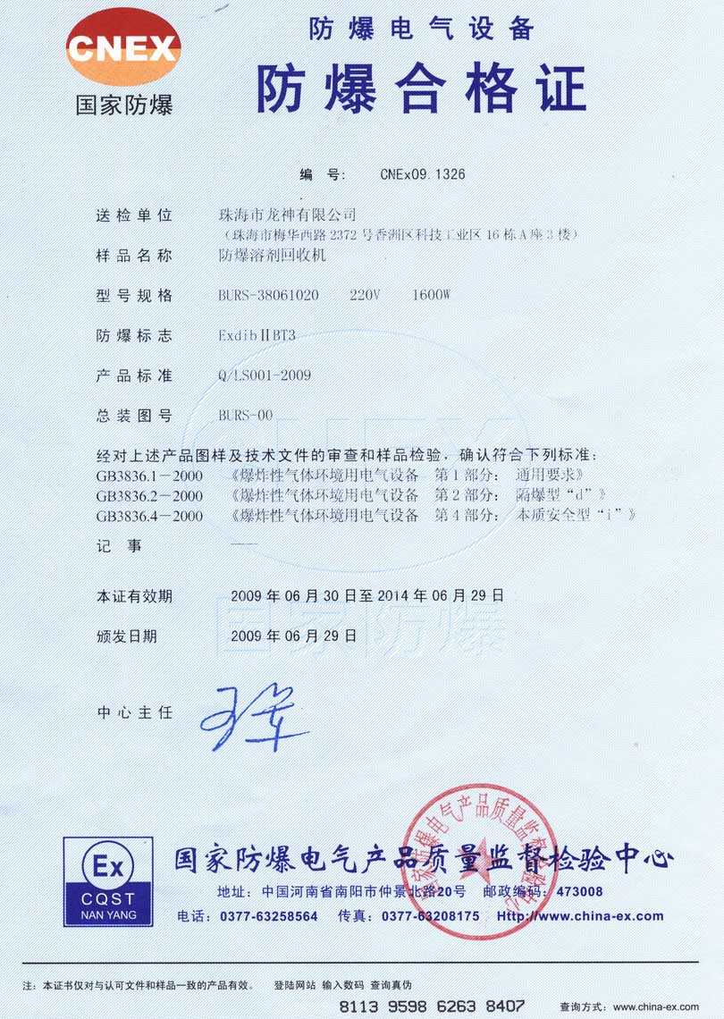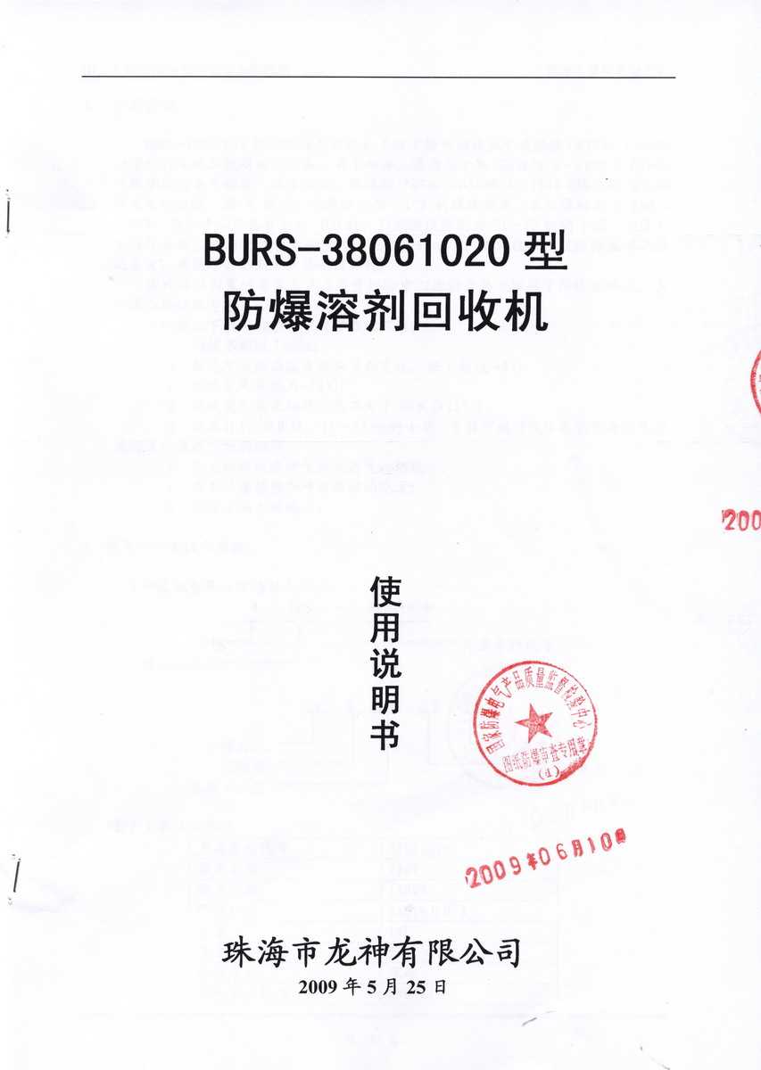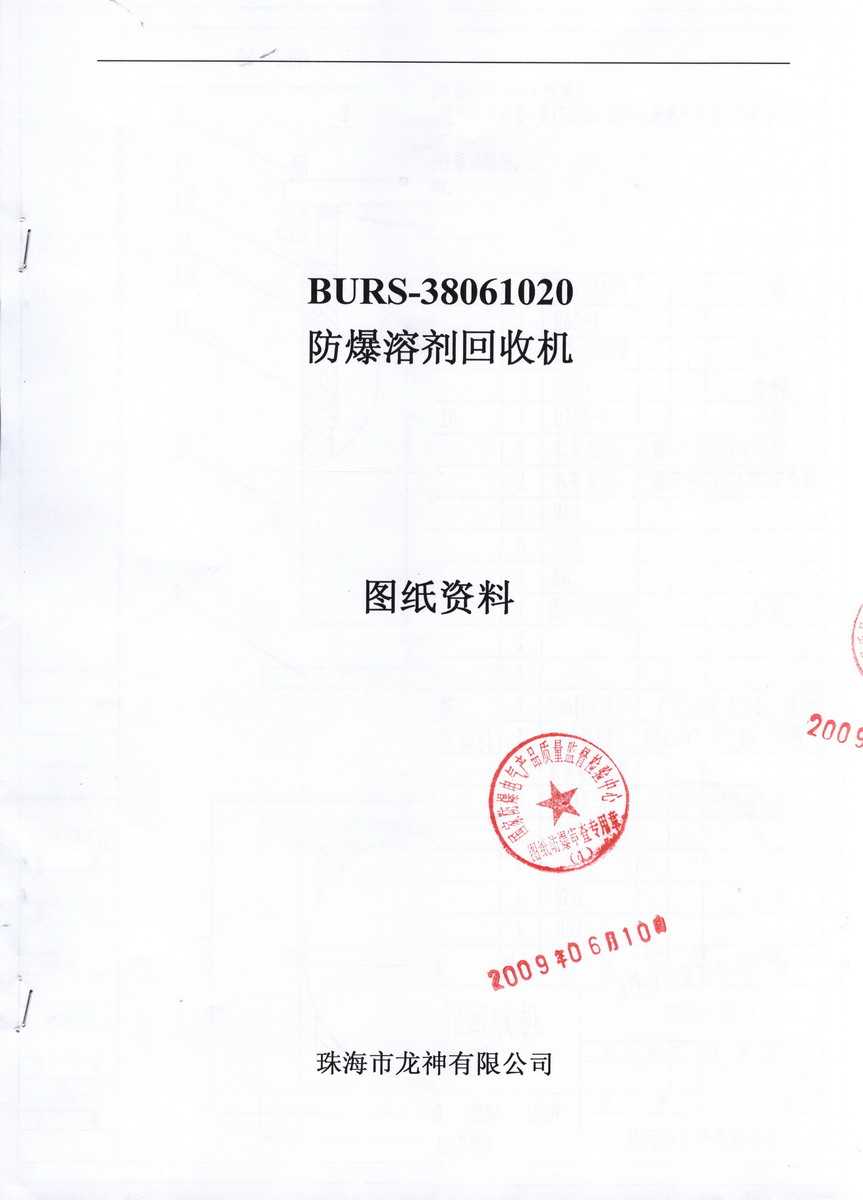 防爆認證 防爆溶劑回收機防爆合格證 BURS系列防爆溶劑回收機技術條件 BURS-38061020型防爆溶劑回收機 使用說明書 BURS-38061020型防爆溶劑回收機 圖紙資料 (以上圖片均可點擊放大) 2012-11-27 34860