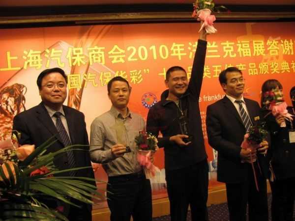 我司無塵干磨系統(tǒng)榮獲“中國汽保華彩”五佳產(chǎn)品稱號 2010年“中國汽保華彩”十大品類五佳產(chǎn)品頒獎典禮上,珠海市龍神有限公司的自研產(chǎn)品無塵干磨系統(tǒng)榮獲“五佳產(chǎn)品”稱號,這給龍神公司畫上了閃亮亮的一筆。 頒獎主持人致辭 我司蘇總上臺領(lǐng)獎(左二) 獲獎瞬間的喜悅 2010-12-14 10226