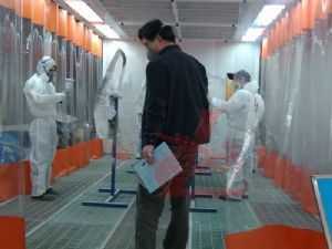 24日上午8點30分,比賽正式拉開戰(zhàn)幕。各代表隊選手統(tǒng)一著裝龍神贊助的鈑噴防護用品,全身心地投入到比賽中去。選手們訓練有素,工具準備、動手加工一氣呵成,扳手、噴槍,樣樣工具用起來得心應手,表現(xiàn)了參賽選手們良好的精神風貌、扎實的基本功。